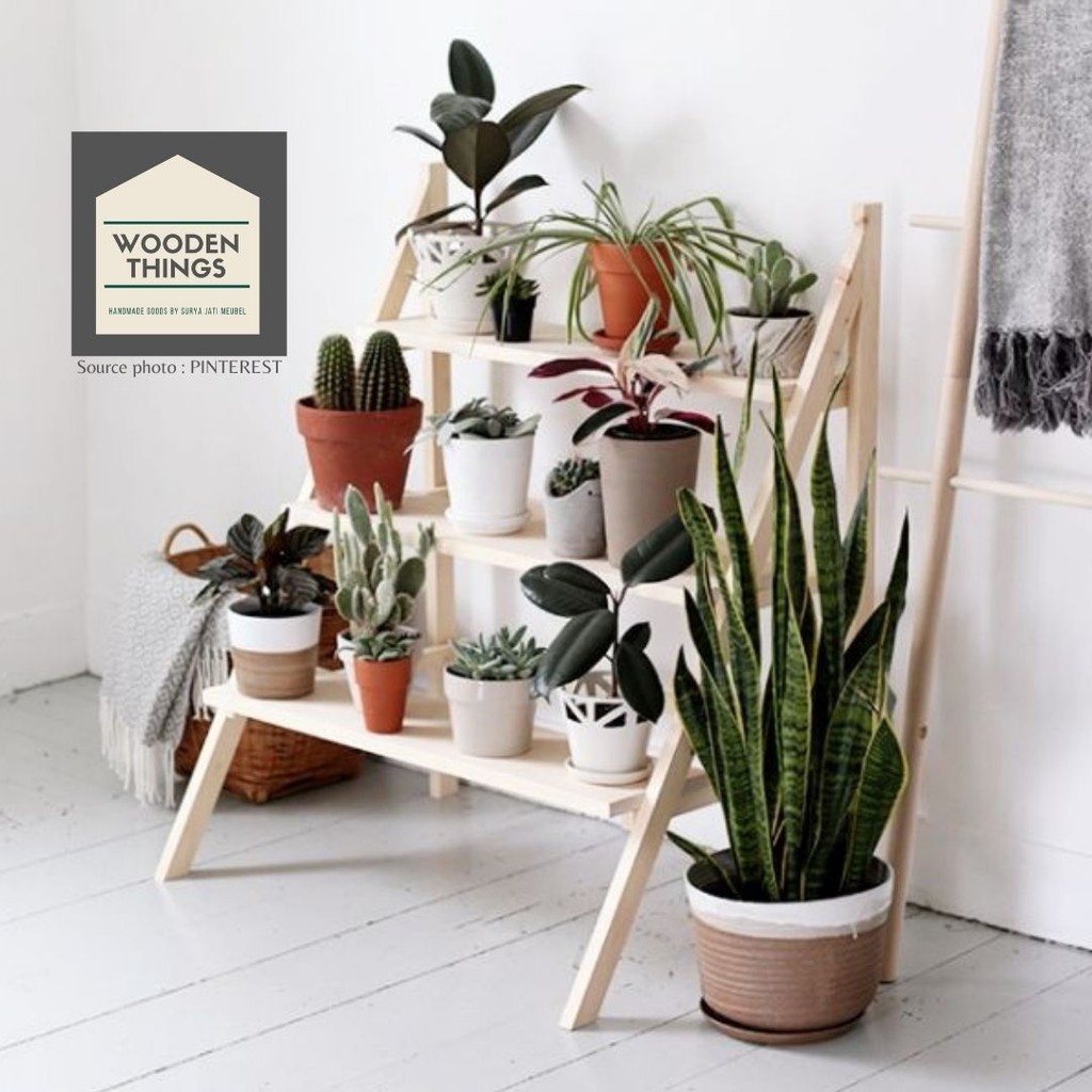 Rak pot bunga kayu susun minimalis kaktus hias Shopee Sumber : shopee.co.id